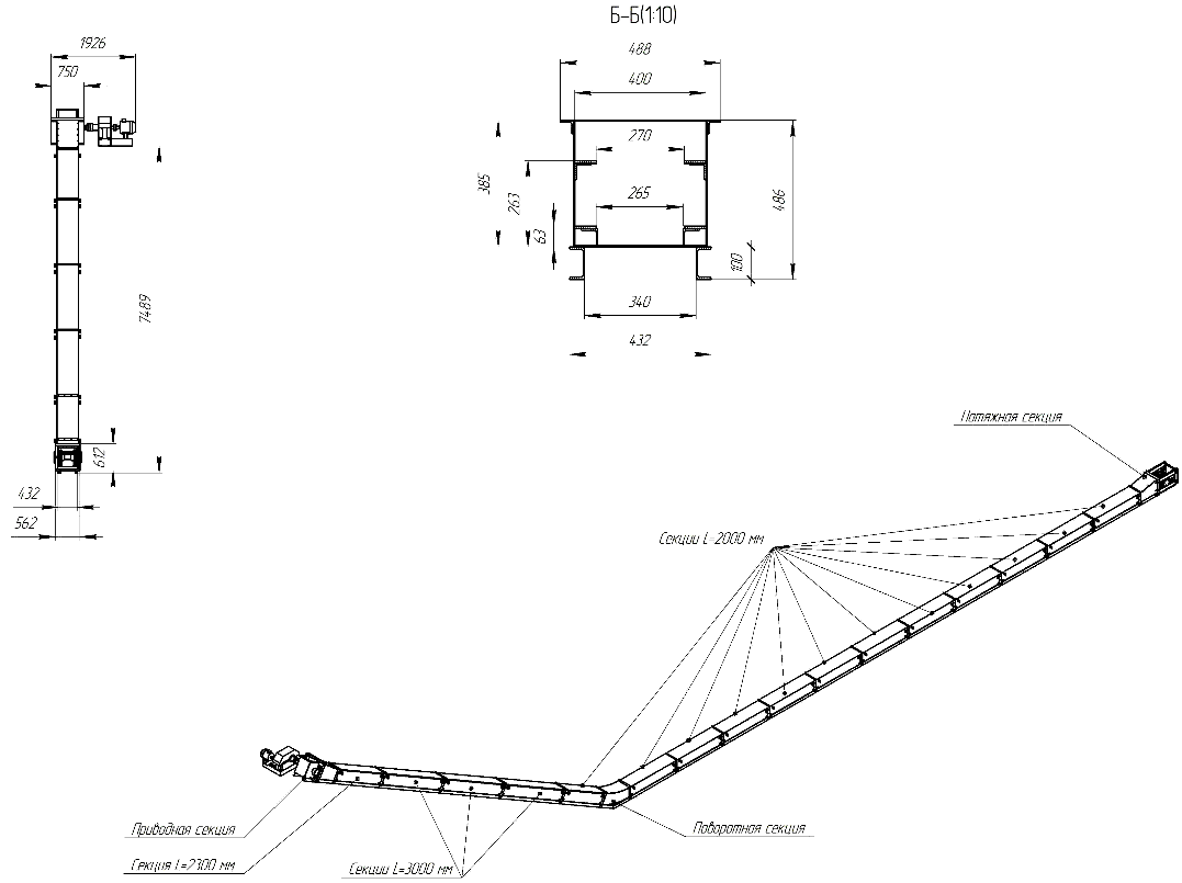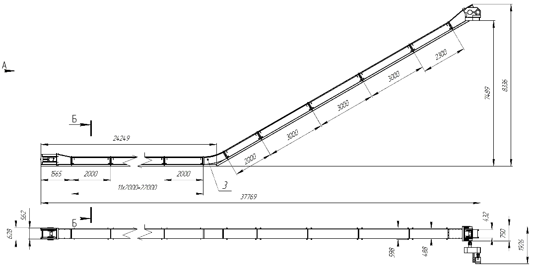 Длина транспортера, min: 3 м